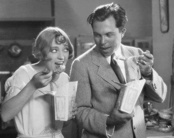 Director King Vidor (1894 – 1982) and actress Marion Davies (1897 – 1961) tuck into a takeaway meal during the filming of ‘The Patsy’ (aka ‘The Politic Flapper’) on Oct. 6, 1927