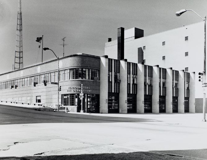 The old Lincoln Grade School was demolished in favor of a “modern structure” in the 1920s. Until the fire department headquarters was built, the property served as a parking lot, generating revenue for the city. The headquarters, designed by Proudfoot & Rawson, was part of the New Deal’s Public Administration project.7