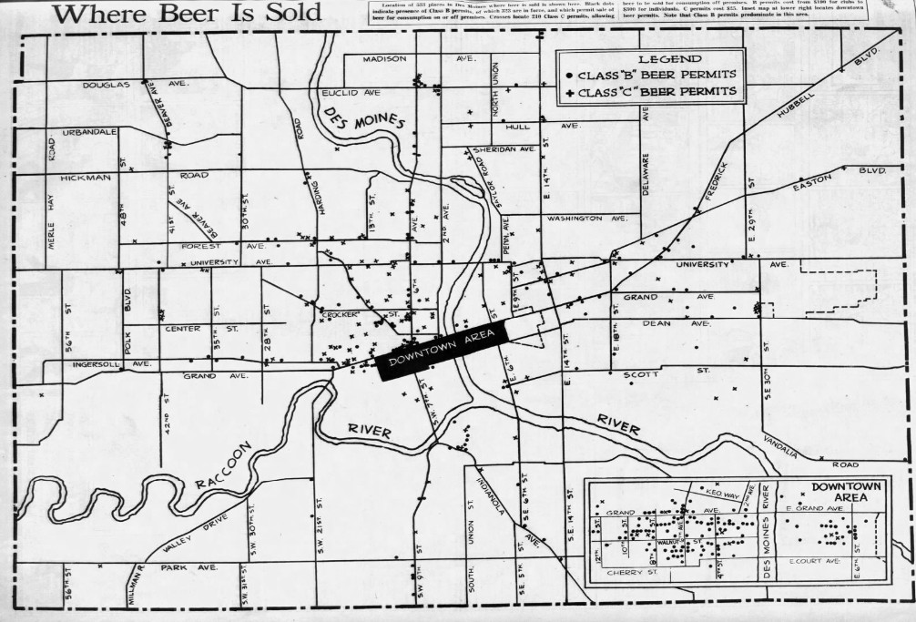 The 1934 Liquor Control Act made beer consumption legal on or off the premises. Taverns, bars, and juke joints popped all over Des Moines to service thirsty customers.46