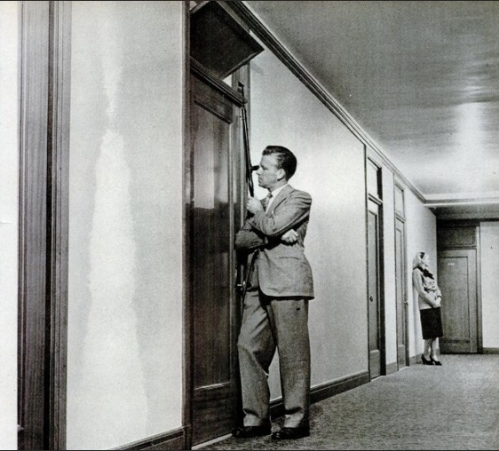 No-fault divorce didn’t exist in 1930s Iowa. Adultery was one of the few acceptable grounds—but it had to be proven, often with the help of a private investigator. My muse for the opening scene: a Life magazine photograph of a detective peering through a transom with a periscope while his assistant kept watch.4