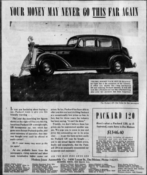 Harrington, Jerry. “Iowa’s Liquor-By-the-Drink Conflict,” Iowa History Journal, January/February 2020, 8-11. ↩︎ - “Nash Promotional Film – 1932 – 1939,” Oldsmobile Garage, 13 June 2021, accessed: 21 August 2025; Byron Olsen, Nash: 1936-1957, Photo Archive (Yellow Springs, Ohio: Ertel Publishing, Inc., 2003); Ronnie Schreiber, “The Three Ps of Motordom: Pierce-Arrow, Peerless, and…Panteras?” The Truth About Cars, 24 April 2014, accessed: 24 August 2023. ↩︎
